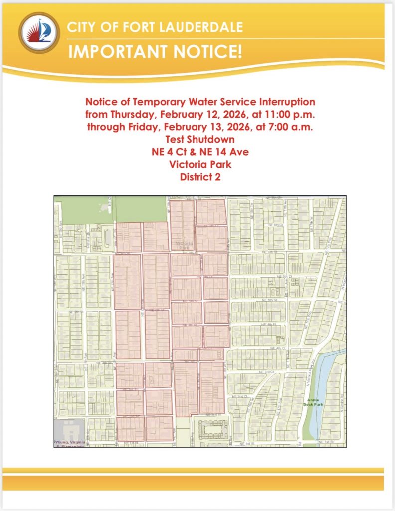 Victoria Park neighbors, please note your water service may be impacted while crews work on the water distribution system in the area this week.